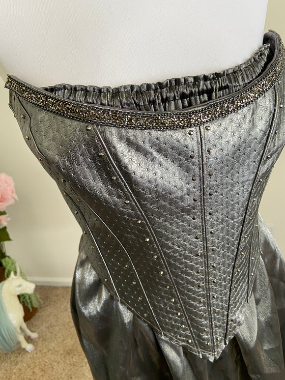Armored pleather corset and Chemise/Skirt UNFINISHED hem