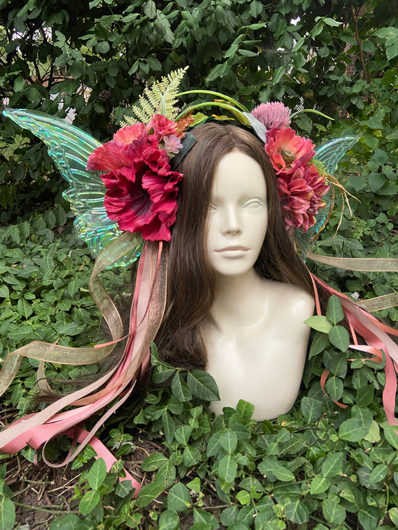 Deep Green Mini Althea Butterfly iridescent fairy wings with antenna