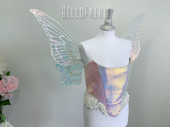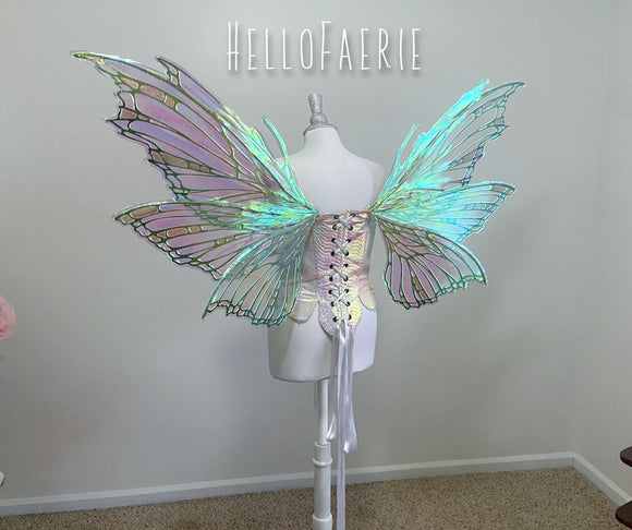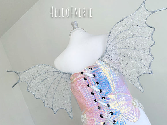 Melting Snow One of a kind Iridescent Fairy Wings with crystal droplets