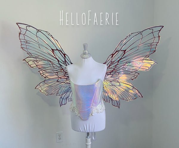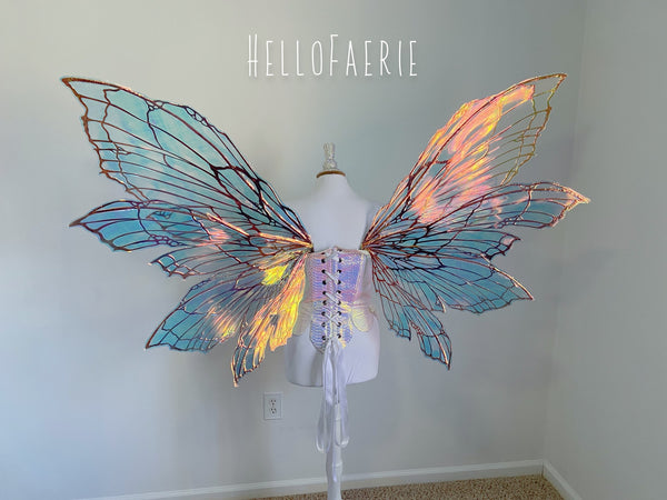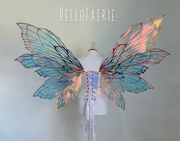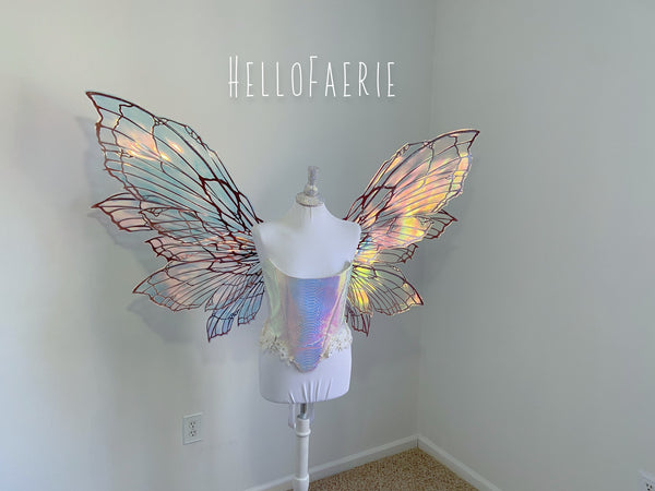 I am so proud and excited to rerelease my popular flexi fairy wings. Made of a durable plastic, they flex and bend without snapping. They are super light, and have iridescent Film over them. You will receive the exact pair in the photos. These wings have a soft gorgeous flutter as you move and are the most unique wings I've ever seen.