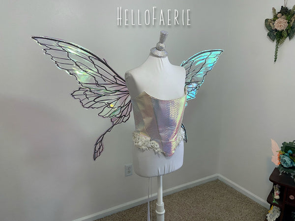 This is my new Fall 2025 Sweet Pea design. These wings have 3 wing panels on either side. Each piece can be posed and moved up and down to create unique silhouettes and looks. Because of this, they are also a lot easier to store than most large wings.