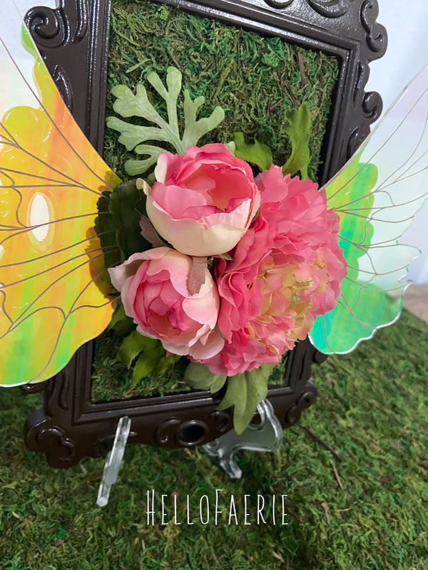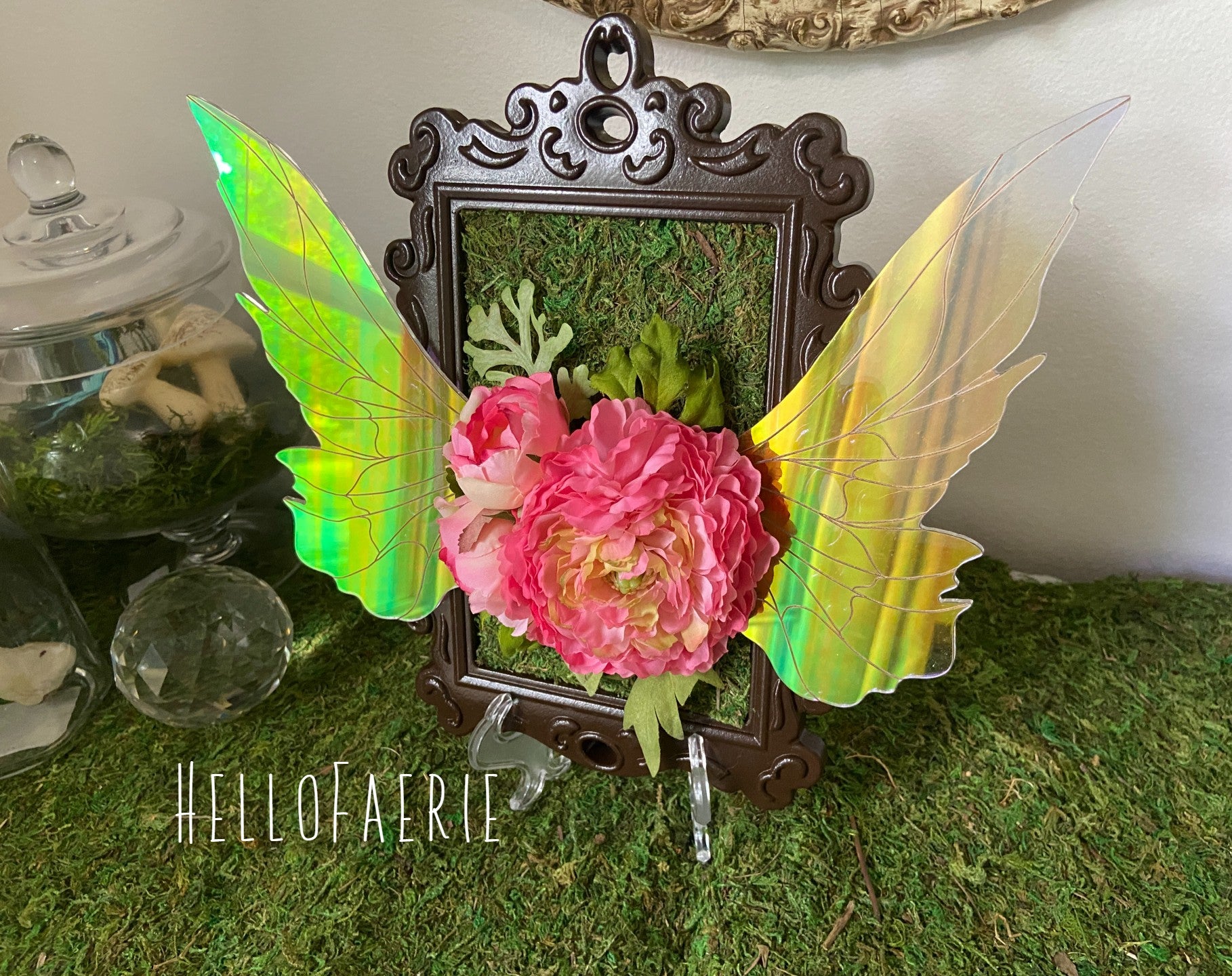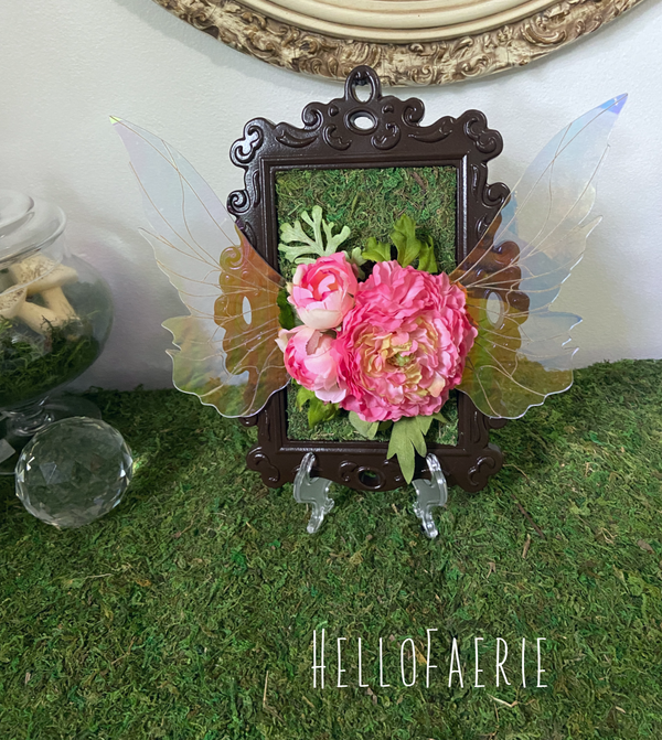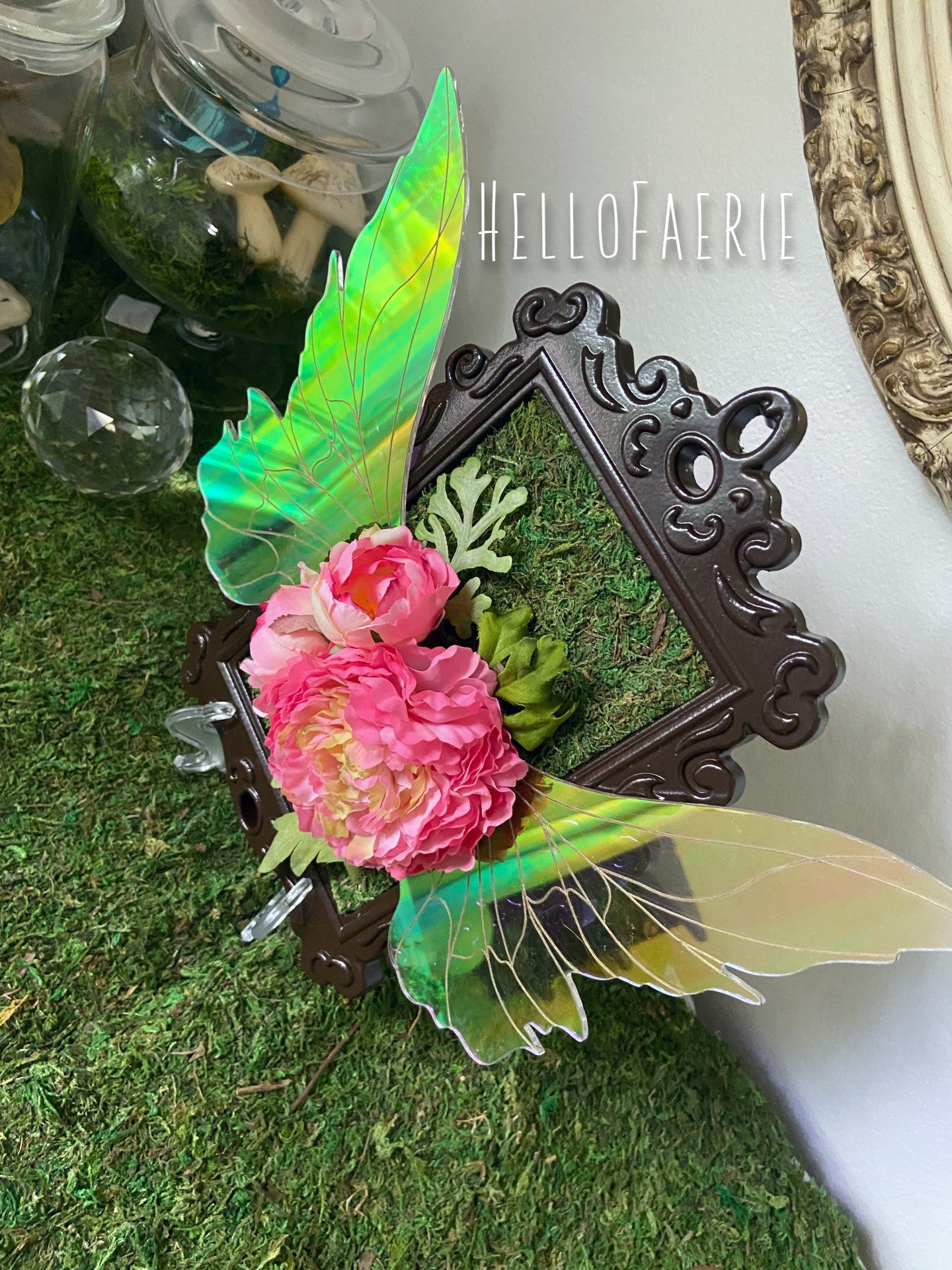 Each piece is unique. Made with prototype wings from my Acrylic wing idea testing. I didn't want these pieces to be purposeless, and had the idea to use some flowers from my stash, some frames from around town, and a little imagination. I so love how these turned out. I'm excited to share these with you all!