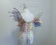 I am so proud and excited to rerelease my popular flexi fairy wings. Made of a durable plastic, they flex and bend without snapping. They are super light, and have multiple blue films over them. These wings have a soft gorgeous flutter as you move and are the most unique wings I've ever seen.