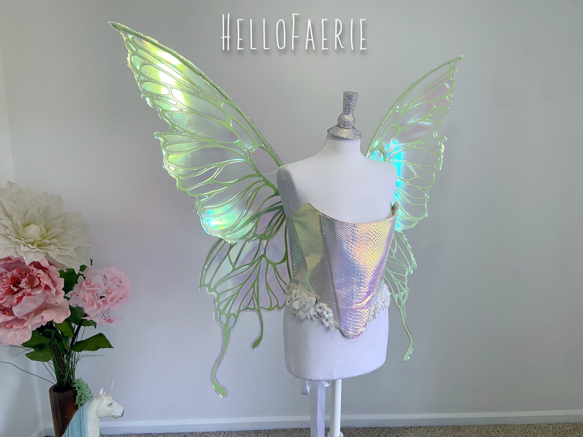 Reserved for Sethra Mint green MONSTER Odette Butterfly iridescent fairy wings